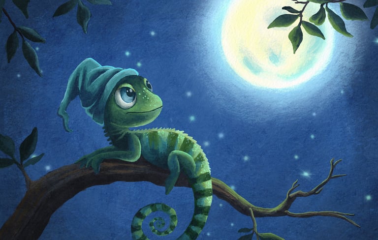 Whimsical skies filled with twinkling stars.